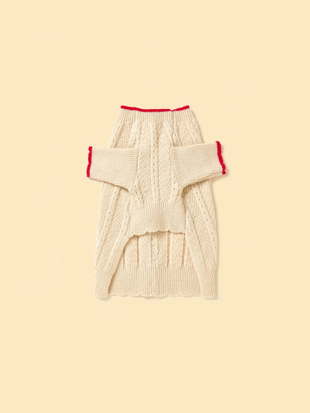 Rib Frilled Bi-colour Knit Top (Ivory)