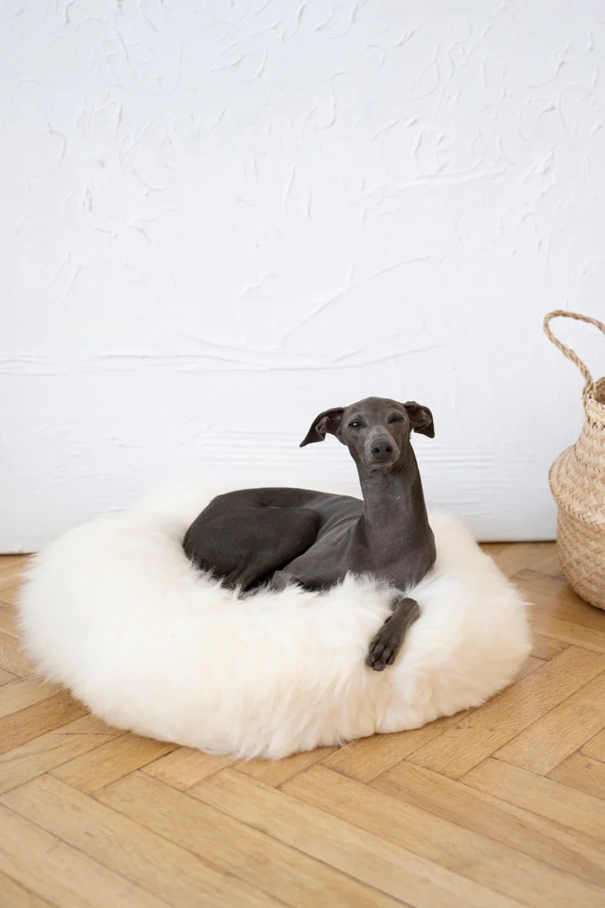 White Round Natural Sheepskin Pet Bed
