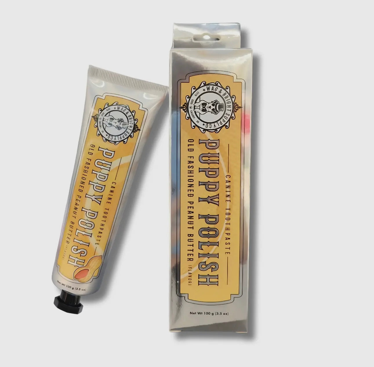A natural toothpaste designed for daily use, Puppy Polish helps remove bacteria and stains while keeping your dog’s breath fresh and mouth clean. The subtle peanut butter flavour is gentle on sensitive senses (yours and theirs), making it a safe and enjoyable oral care routine for dogs of all ages.