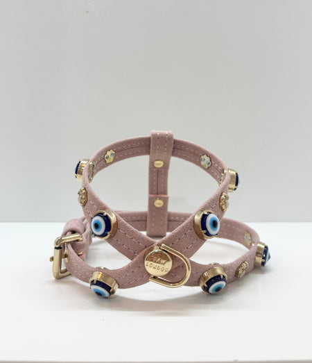 Evil Eye Dog Harness - Pink Seude