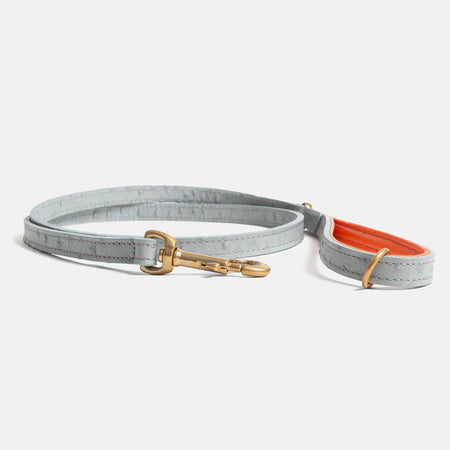 Ostrich Leather Dog Lead Grey & Orange