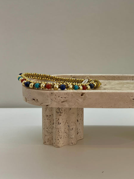 Lapis, Turquoise Howlite, Orange Agate and Gold Plated Hematite Bracelet