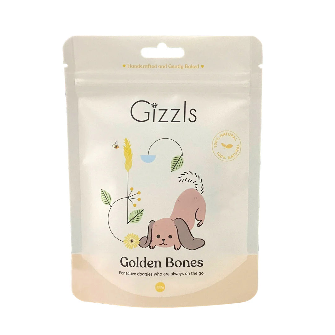 Gizzls Golden Bones are wholesome, hand-baked treats designed to support your dog’s joint health and keep tails wagging. Made with powerful natural ingredients like turmeric and black pepper, these petite bone-shaped biscuits are ideal for dogs of all sizes—especially those dealing with stiffness or soreness. Turmeric is known for its natural anti-inflammatory properties, making these treats a great choice for both growing pups and senior dogs. Hypoallergenic and 100% natural, they’re free from grains, gluten, dairy, soy, and any artificial nasties. Perfect as daily rewards or training treats.