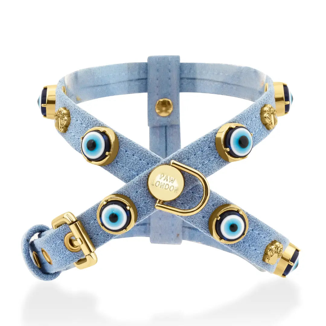 A sleek, structured harness that brings meaning and style together. The Evil Eye Suede Harness is crafted from smooth vegan suede leather and finished with gold-plated brass hardware and a signature evil eye charm.