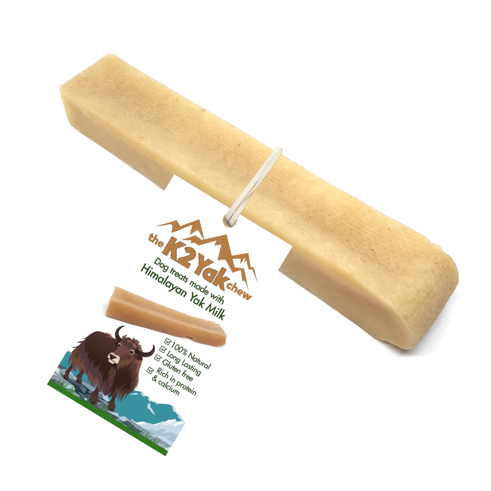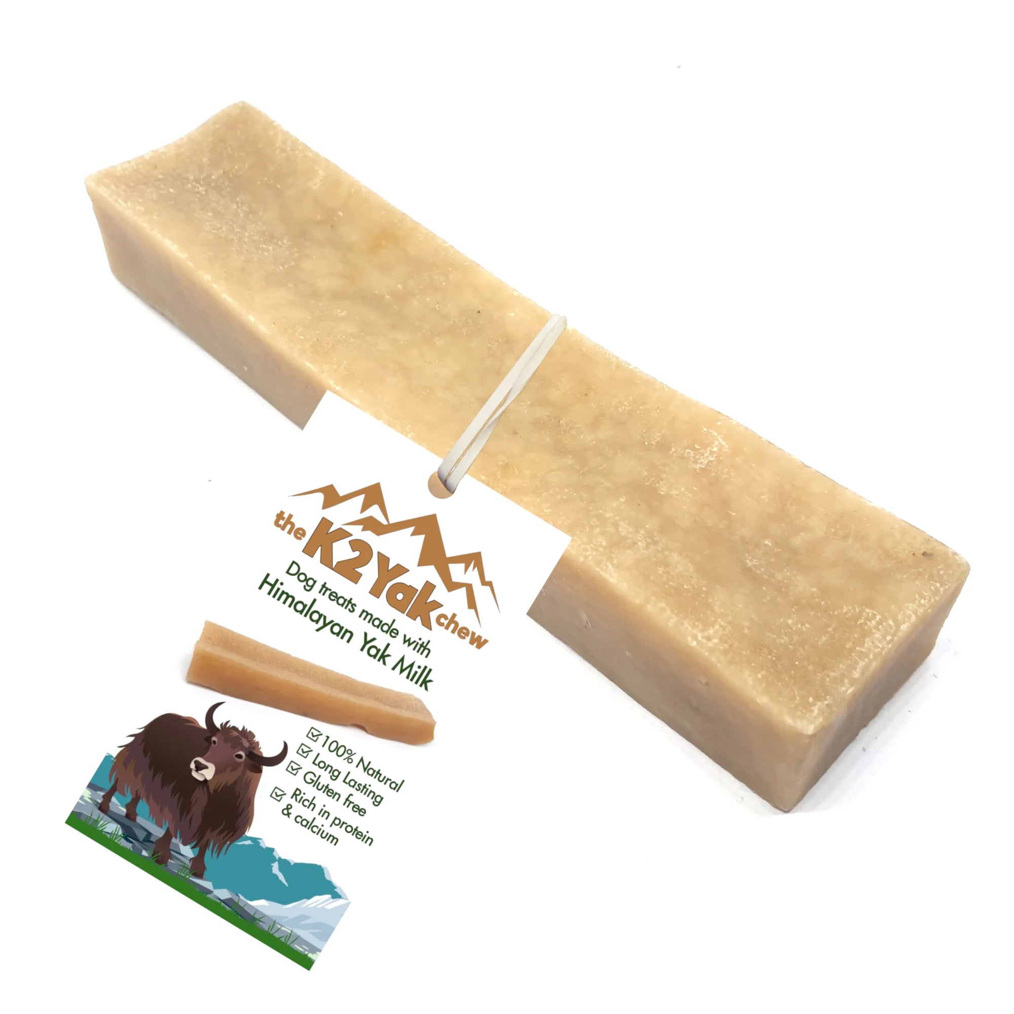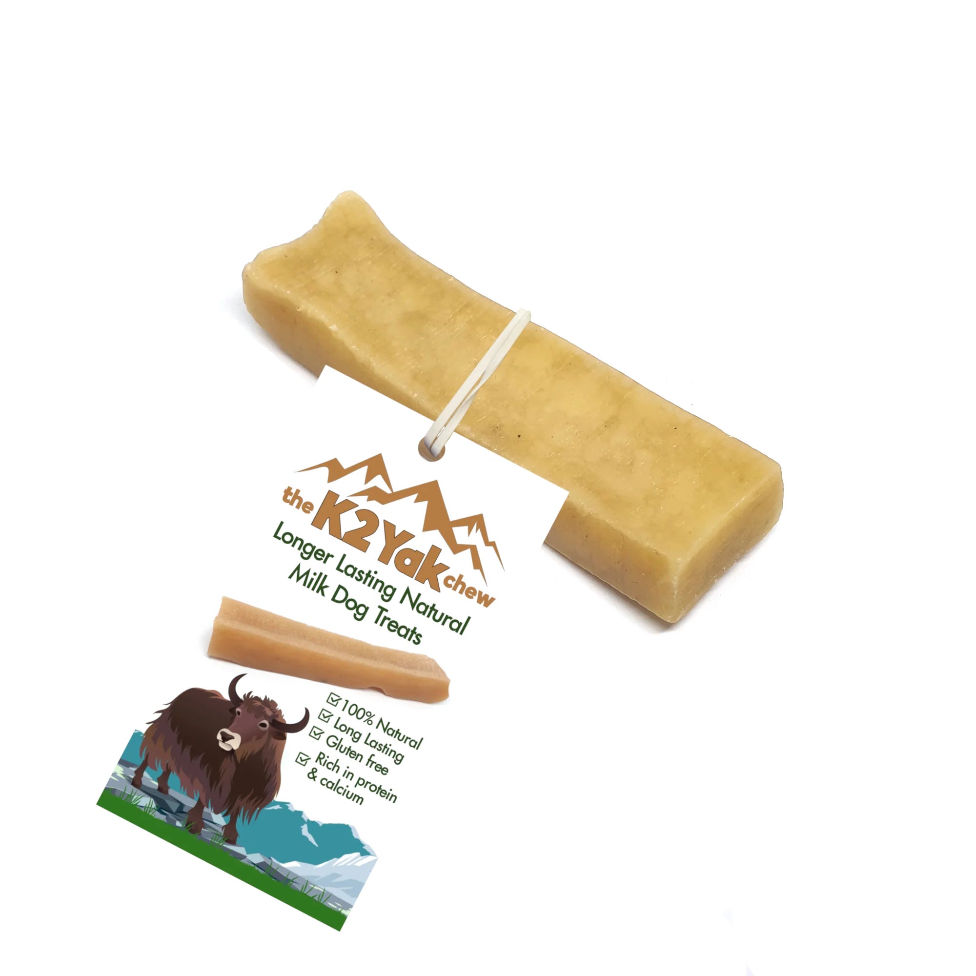 K2 Yak Chews are 100% natural dog treats made from Yak and Cow milk with added lime juice & salt. These chews were first created and consumed as snacks by the Himalayan people decades ago as a good source of protein. They are long-lasting and healthy for your dog. K2 Yak Chews come in three sizes: small, medium, large.