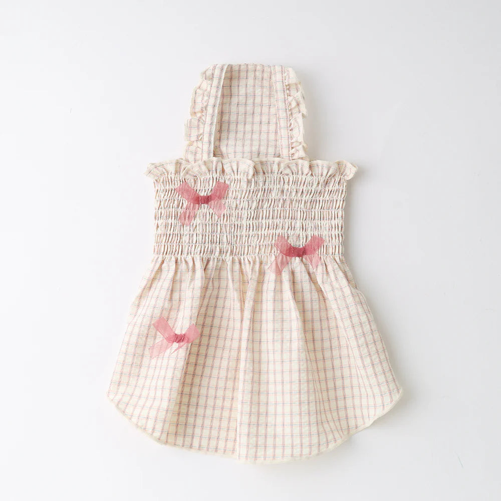 Pink Cool Check Gathered Ribbon Dress