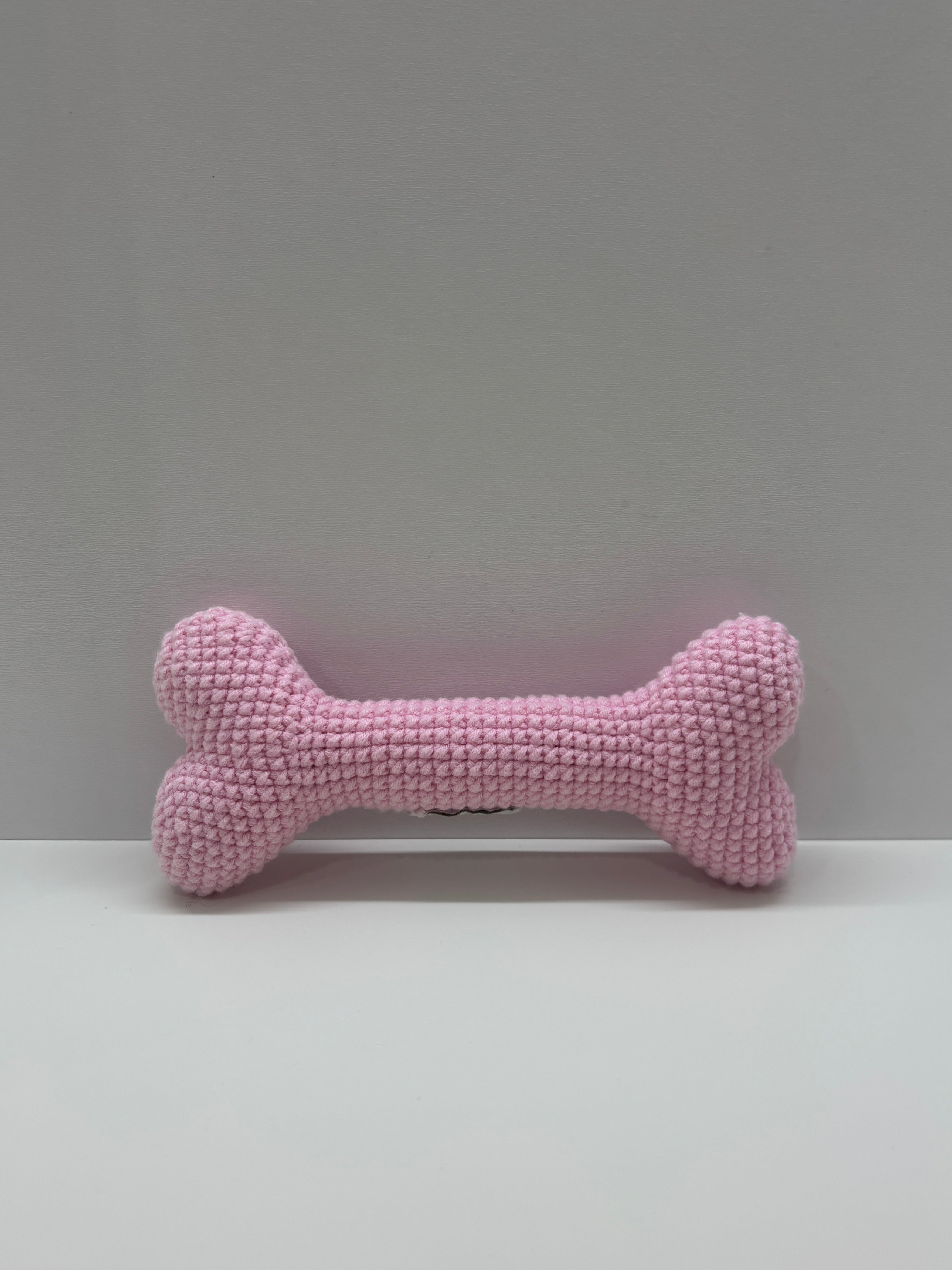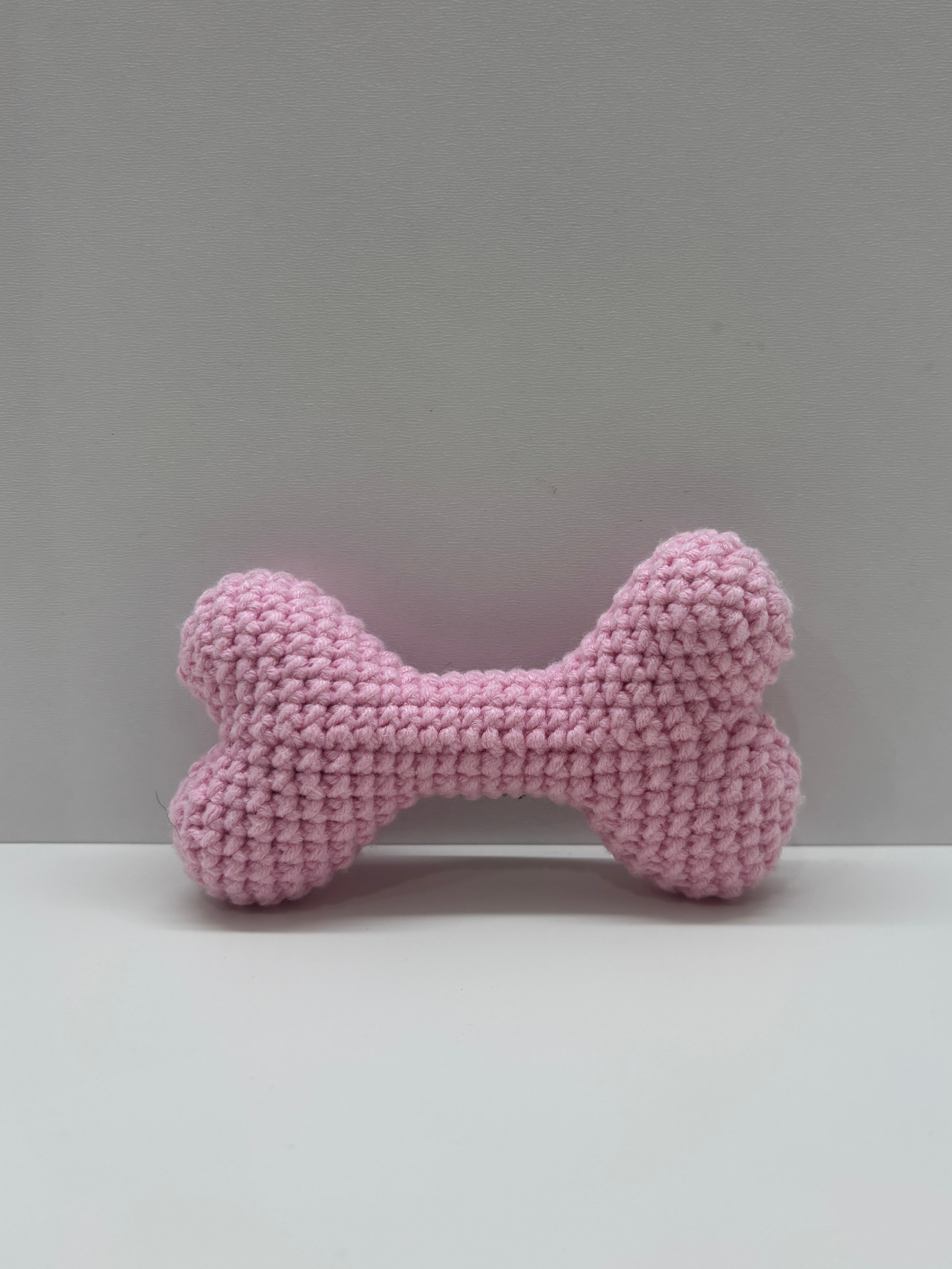 Mello Worlds perfect bite-size bone shaped crochet pet toy.